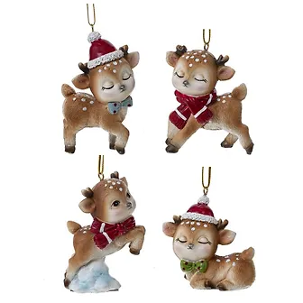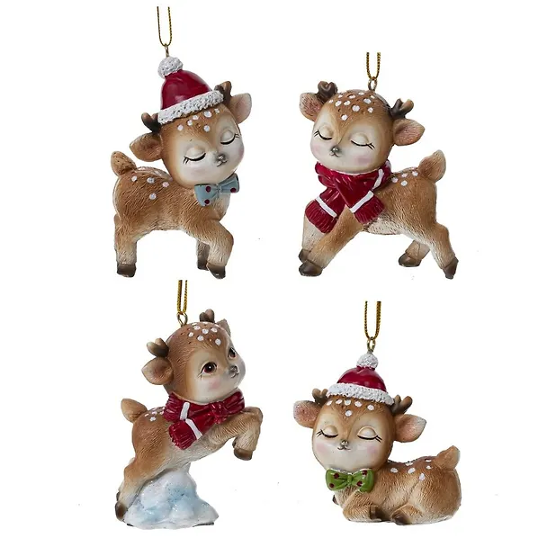 Декоративная фигурка-подвеска "Олененок" станет замечательным элементом вашего интерьера. Оленята представлены в четырех милых вариантах, в красном новогоднем колпаке или в шарфике, каждый в игривой позе. Белые пятнышки придают им очарование и создают позитивное настроение. Этот сувенир отлично подходит в качестве подарка, вызывая приятные эмоции и добавляя атмосферу праздника в любые мероприятия.