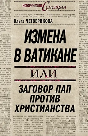 .«Измена в Ватикане» О. Четвериковой -острая и увлекательная публицистика. Хотя книги на данную тему уже выходили на Западе, в России об