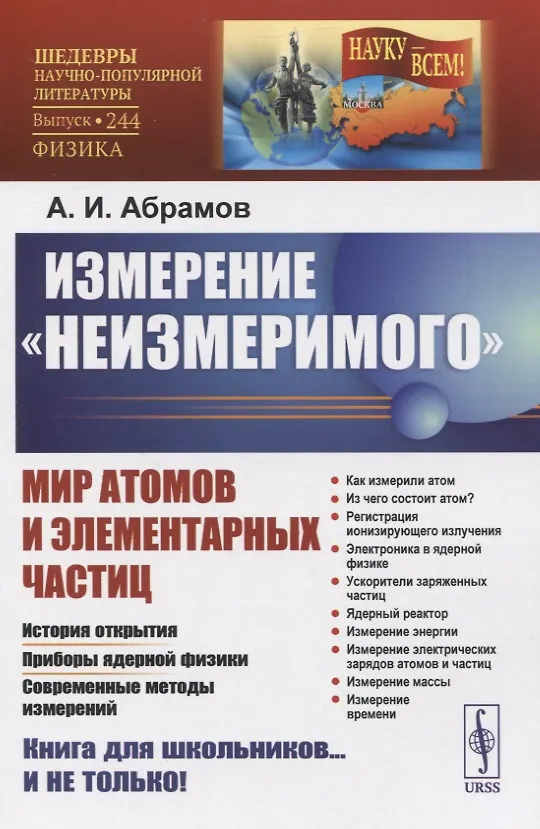 В настоящей книге рассказывается о том, как человек догадался о существовании атомов, как ученые научились измерять эти «неизмеримо» малые частицы вещества, какие приборы используют в современных лабораториях для исследований атомов и элементарных частиц и какие задачи еще предстоит решить физикам в области измерения объектов микромира. На страницах книги читатель не только ознакомится с миром атомов и элементарных частиц, но и узнает о том, как были изучены свойства и измерены основные характеристики микрочастиц, о тонких остроумных экспериментах, задуманных и выполненных учеными с большой изобретательностью, а также о сложном и кропотливом анализе результатов этих экспериментов, который пр