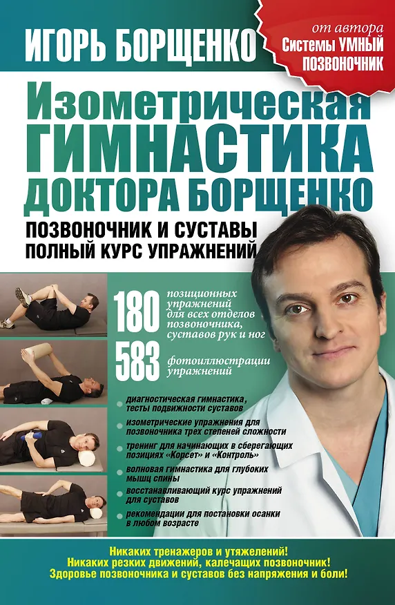 В книге нейрохирурга, кандидата медицинских наук Игоря Анатольевича Борщенко читатель найдет уникальную методику изометрических мышечных тренировок по укреплению глубоких мышц спины и формированию осанки. Особенность этой гимнастики в том, что мышцы напрягаются в специальных эргономичных позициях, практически без движений или с использованием специальных движений малой амплитуды, что ИСКЛЮЧАЕТ ПЕРЕГРУЗКУ СУСТАВОВ И ПОЗВОНКОВ. Не случайно систему мышечных тренировок «Умный позвоночник» Игоря Борщенко называют «неподвижной» (статической) гимнастикой. Методика уникальна по своей простоте и доступности. Она годится для всех, кто страдает заболеваниями опорно-двигательной системы, для больных,