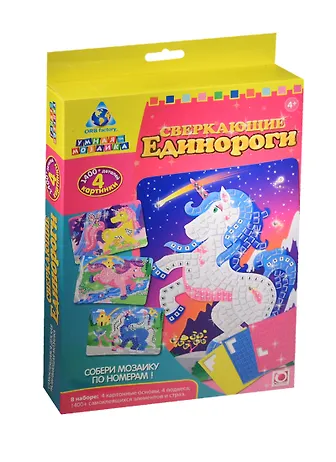 K.Orb.Мозаика-набор Сверкающие единороги (4 шт.) (05070) (3+) (Умная мозаика) (Origami) (упаковка)