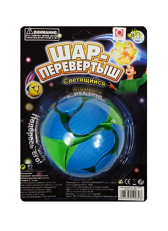 Шарик, размером 7 см в свернутом виде, при подбрасывании в воздух расширяется до 9 см и меняет цвет граней. Внутри шарика светодиод с батарейкой.