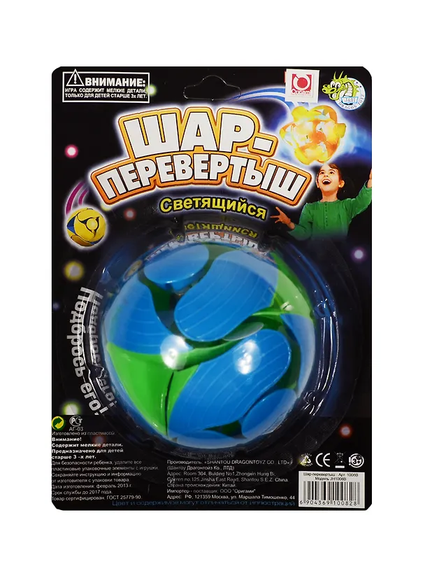 K.SH. Шар-перевертыш светящийся в блистере (d 7см) (JH1008B) (Origami) (упаковка)