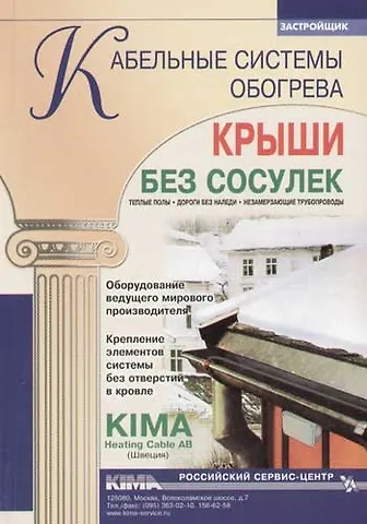 Справочник по типам и конструкциям кабельных систем обогрева, применяемых в «теплых полах» системах защиты трубопроводов от замерзания системах защиты кровли, карнизов и водостоков от снега и льда системах антиобледенения для открытых площадей (лестницы, пандусы, подъездные пути и др.). Производство работ по установке таких систем обогрева.
