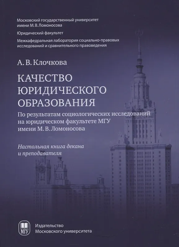 В данной книге представлены результаты социологических исследований различных сторон учебного процесса на юридическом факультете МГУ им. М.В. Ломоносова за период с 2008 по 2017 г. Предметом этих исследований являются качественные характеристики высшего юридического образования. Цель работы — выявление существующих в образовательном процессе проблем и разработка соответствующих рекомендаций по их решению на основе выделения факторов, влияющих на качество юридического образования и эффективность воспитательной работы со студентами. В качестве инструментария использованы такие социологические методы сбора эмпирической информации, как опрос (анкетирование, интервью, опрос экспертов) и анализ до