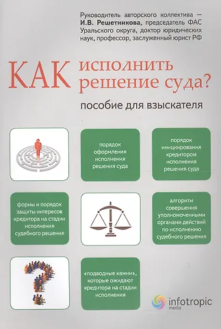 .В доступной форме излагаются порядок оформления исполнения решения суда; система государственных и иных органов и организаций, уполномоченных на исполнение судебных решений в России; порядок инициирования кредитором исполнения решения суда; алгоритм совершения уполномоченными органами и организациями действий по исполнению судебного решения; формы и порядок защиты интересов кредитора на стадии исполнения судебного решения. Даются ответы на вопросы со ссылкой на законод
