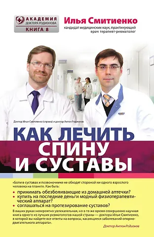 ""Боли в суставах и в позвоночнике не обходят стороной ни одного взрослого человека на планете. В ваших руках невероятно увлекательная книга одного из лучших ревматологов нашей страны — доктора Ильи Смитиенко. В ней вы найдете ответы на все основные вопросы, касающиеся заболеваний опорно-двигательного аппарата. Читайте эту книгу и сохраняйте физическую активность как можно дольше!"" Доктор Антон Родионов