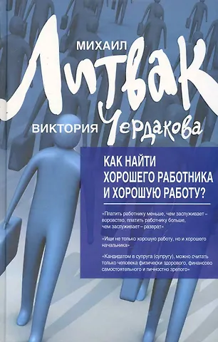 В совместной книге известного специалиста в области психологии М К Литвака и специалиста в области подбора персонала В.В. Чердаковой рассматривается ключевой вопрос для любой организации — поиск эффективных сотрудников, в том числе и в условиях кризиса. И, как обратная его сторона, поиск надежной работы для квалифицированного человека. Современные рекрутинговые технологии, базирующиеся на глубоком знании психологии личности, позволяют получить инструмент как для эффективного поиска работы и работников, так и для оценки человеческих, личностных качеств потенциальных партнеров, сотрудников. Разносторонний подход позволяет создать стереоскопический эффект, дающий более полную, объемную и реальн