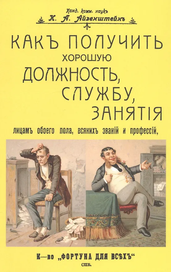 Сборник писем, посылаемых самостоятельно и в ответ на публикации, начинающими и опытными уже лицами, на русском и иностранном языке. Написал Кандидат коммерческих наук К. А. Айзенштейн. 2-е издание, значительно дополненное. и исправленное. Издание представляет собой образцовое пособие для поиска работы в конце XIX века и включает рекомендации о том, как находить связи и отыскивать вакантные должности, как составлять резюме и вести себя на собеседовании. Прикладываются образцы писем для различных должностей, в том числе продавщицы, кухарки, управляющего имением и прочих. Полностью актуальна и сегодня.