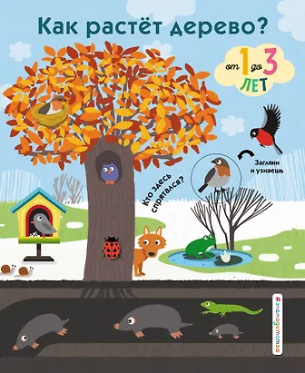 Понаблюдайте за годом из жизни дерева - и узнайте о смене времён года! С этой книгой можно играть по-разному, она будет интересна каждому ребёнку. Здесь можно сочинять свои истории, рассматривая красочные картинки, говорить от лица персонажей со страничек и даже сочинять стишки к каждой маленькой зарисовке из жизни дерева. На каждой странице детали меняются - это превращается в увлекательную игру: найти и рассказать про того, кто смотрит на тебя из окошка!