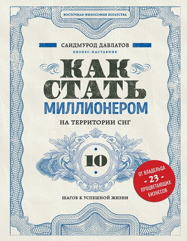 Всего 10 шагов отделяют вас от богатой, изобильной жизни! В этой книге Саидмурод Давлатов представляет пошаговую методику открытия и развития успешного бизнеса. Все его слова подкреплены делом, а советы — проверены реальным опытом. За свою жизнь автор участвовал в 67 бизнесах, и многие из них сейчас процветают. Но часть не оправдала себя, о чем честно рассказывает Саидмурод Давлатов. Именно благодаря тому, что речь идет как о позитивном, так и негативном опыте, книга так ценна — ведь лучше учиться на чужих ошибках, чем совершать собственные.