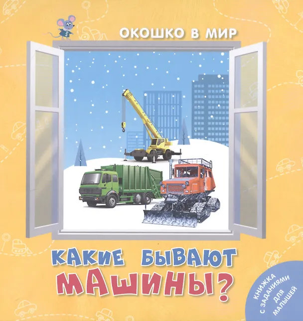 Домик мышки засыпало снегом, по совету зайца она отправляется в на поезде в город на поиски машины, которая расчистит снег. В городе мышке встречаются разные виды транспорта: трамвай, троллейбус, мусоровоз, пожарная машина, скорая помощь, автокран, экскаватор и в конце-концов она находит снегоуборочную машину, которая доставляет ее домой и помогает расчистить домик от снега. В конце книги есть задания об упомянутых в книге видах машин, где ребёнок, даже если ещё не умеет говорить, может пальцем показывать ответы на вопросы. Машины нарисованы крупными, максимально приближенными к реальности. Хорошая книга для первого знакомства с машинами, встречающимися в городе.