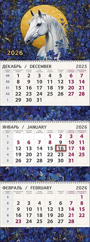 Довольна покупкой, оставляет приятное впечатление! Рекомендую всем выбор данного товара в качестве подарка, великолепный новогодний презент накануне 2026 года с символом Лошади. Красивый, удобный в креплении и пользовании квартальный календарь на спирали, и более того, он смотрится эстетично по месту. Цена календаря соответствует его качеству (удачно подобранный дизайн, сорт бумаги). Не нахожу никаких минусов, нравится.