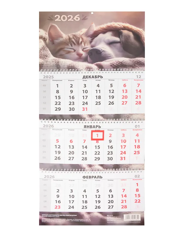 386 ₽ 309 ₽Календарь квартальный 2026г 297*695 "Чувиляева. Котизм" настенный, трёхблочный, спираль Купить