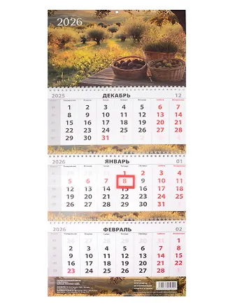 Календарь квартальный 2026г 297*695 "Сады Прованса" настенный, трёхблочный, спираль