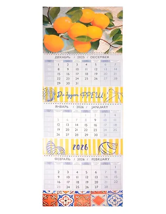 Настенный трехблочный календарь на 2026 год — удобное решение для дома, офиса или учебы. Дизайн «трио» позволяет видеть сразу три месяца, что облегчает планирование и делает организацию времени более эффективной. Квартальный календарь настенный оснащен курсором-бегунком для быстрого поиска нужной даты. Его отрывной формат обеспечивает легкость использования благодаря пружине белого цвета. Подложка календаря изготовлена из мелованного картона, также имеется пикколо для подвешивания календаря на стену, что придает изделию аккуратный и презентабельный вид, что особенно важно для рабочего пространства или учебной аудитории. Офсетная бумага листов плотностью 80г гарантирует приятные тактильные ощ
