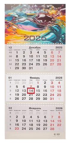 Календарь квартальный 2026г 305*680 "Яркая вода" настенный, трёхблочный, спираль