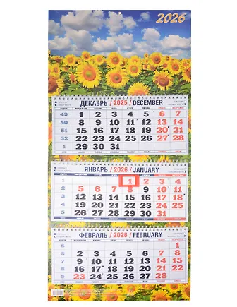 Приятное оформление: жизнерадостные подсолнухи оживляют и сам календарь, и помещение, где он висит.