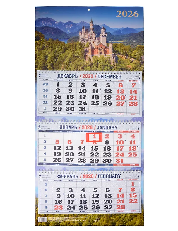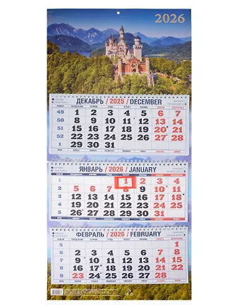 Календарь квартальный 2026г 310*680 "Замок в горах" настенный, трёхблочный, спираль