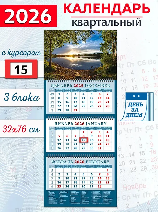 Календарь квартальный 2026г 320*760 «Кремль на фоне Государственного флага» настенный, трёхблочный, спираль