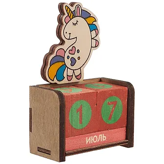 Календарь вечный Единорог с цветной гривой (7х10х3,5) (дерево) (kd3)
