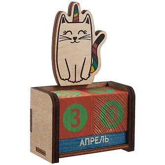 Календарь вечный Котик-единорог (7х11х3,5) (дерево) (kd5)