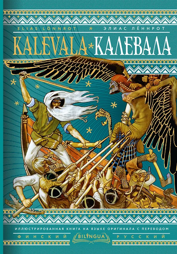 Среди дремучих лесов и холодных волн живёт мудрый Вяйнемёйнен, чьи песни преображают мир, кузнец-демиург Илмаринен и чародей Лемминкяйнен. Их реальность пронизана магией: музыке подчиняется ветер и духи леса, коварная колдунья насылает холод и туман, а волшебная мельница Сампо дарует богатство и счастье. Жизнь героев, полная испытаний и подвигов, описана в древних рунах «Калевалы» — величественном карело-финском эпосе, который по значимости стоит в одном ряду с такими произведениями, как «Илиада», «Песнь о Нибелунгах» и «Беовульф». В настоящем издании оригинальный текст «Калевалы» приводится с параллельным переводом Л. П. Бельского, отмеченным Пушкинской премией. Произведение сопровождается