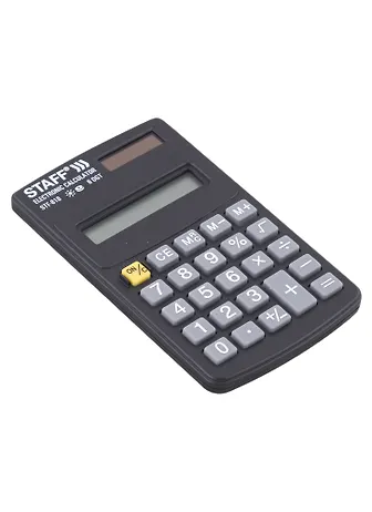 Небольшой, размером 10*6см, но на удивление удобный калькулятор. Питание от двух батарей: солнечной и классической шайбочки. Особый восторг вызвали у меня кнопки: они достаточного размера, для женского пальчика, прорезинены, приятны тактильно и совершенно не скользят - попадание в цифры 100%. Чётко видны цифры на табло и на кнопках. Если калькулятор находится в покое пару минут, табло автоматически гаснет. Легкий, компактный. Обложку за ненадобностью удалила.