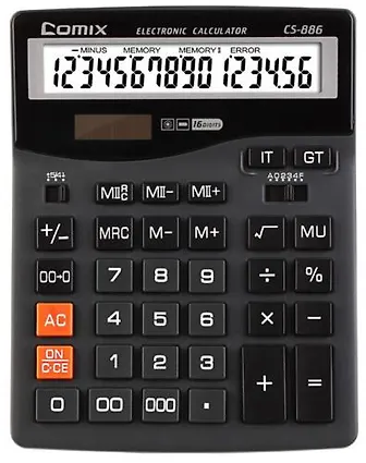 Настольный калькулятор COMIX CS-886 прекрасно подойдёт для школьников старших классов, студентов, работников офисов и руководителей. Калькулятор выполнен в классическом стиле модель с металлической панелью. Калькулятор имеет большой дисплей для сохранения зрения. Калькулятор COMIX оснащен чувствительной клавиатурой позволяющей легко и правильно производить вычисления.