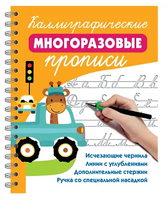 Каллиграфические многоразовые прописи" — это волшебная книга с трафаретными буквами, которые помогут будущим школьникам научиться писать красивым почерком. В наборе — ручка, 10 запасных стержней с ичезающими чернилами и насадка для правильного формирования почерка. Можно тренироваться хоть тысячу раз!