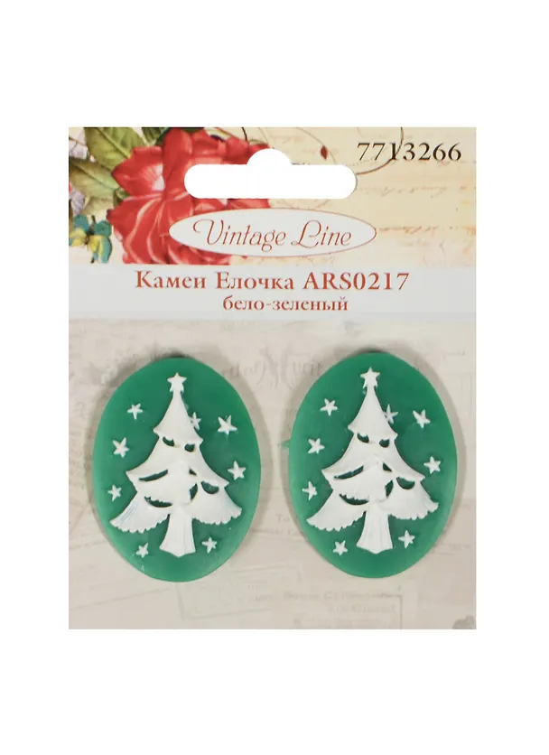 Камеи Елочка (ARS0217) (7713266) (2шт) (бело-зеленый) (30х40х5,5мм) (упаковка)