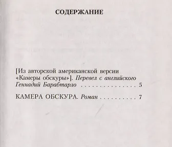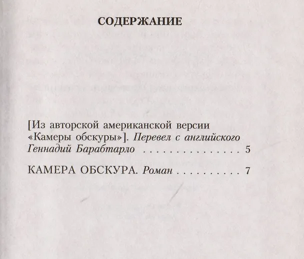 Камера обскура» (1931, опубл. 1932—1933) — пятый русский роман Владимира Набокова и второй из трех его романов на «немецкую» тему, самый камерный и мрачный из них. Берлинский искусствовед Бруно Кречмар, увлекшись бездарной шестнадцатилетней актриской Магдой Петерс, тайной любовницей художника Роберта Горна, бросает семью и вовлекается в глумливый околоартистический круг, не подозревая, что последствия этой пошлой интрижки окажутся для него роковыми. Расхожее выражение «любовь слепа» реализуется у Набокова в форме криминального сюжета о страсти, измене, ревности и мести, а физическая слепота, поражающая героя в финале, становится наказанием за духовную слепоту, за искаженное видение мира, за