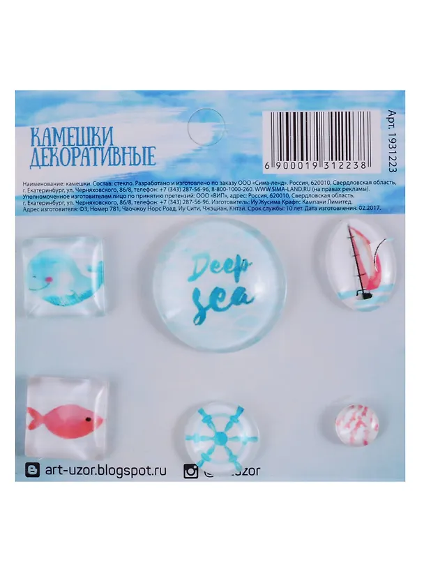 Камешки декоративные Мое море (1931223) (6шт.) (7,5 х 7,5 см) (упаковка) (3+) (Арт Узор)