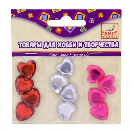 Камни FANCY самоклеящиеся Сердечки разноцветные, d= 1,5см, 12шт.