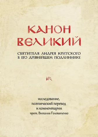 Великий Канон святителя Андрея, архиепископа Критского имеет исключительную значимость в духовной жизни православных христиан и в христианском литургическом искусстве. За тринадцать веков своего существования авторский текст Канона прошел многочисленные переписывания и «оброс» огромным количеством дополнений и правок, часто уводящих читателя далеко от первоначального смысла.