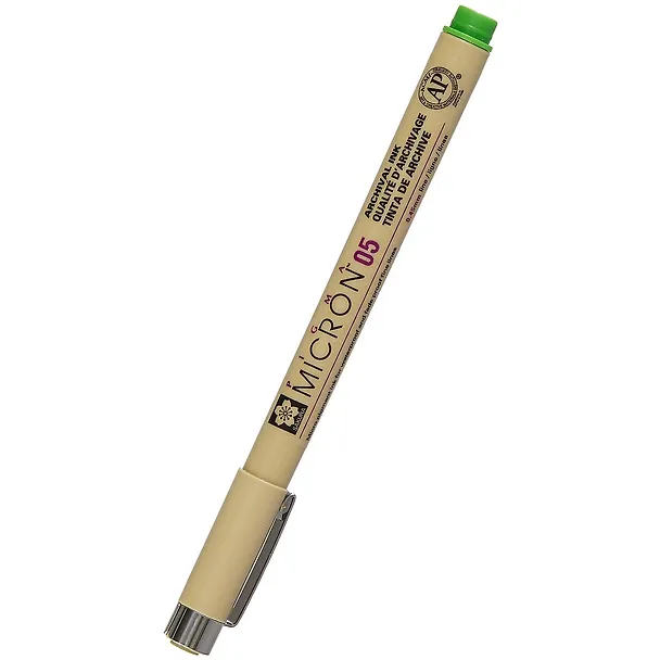 Капиллярные ручки от Micron самые лучшие. Всегда беру их для заполнения еженедельника, не оставляют кляксы и наконечник сильно не изнашивается при долгом использовании. Писать в обычных ''школьных'' тетрадях и тонких блокнотах тоже удобно, ничего не просвечивает. Этой ручкой можно и рисовать или раскрашивать, в общем выходит неплохо, но больше они заточены на обводку или письмо. Салатовый оттенок достаточно светлый, но читаемый.