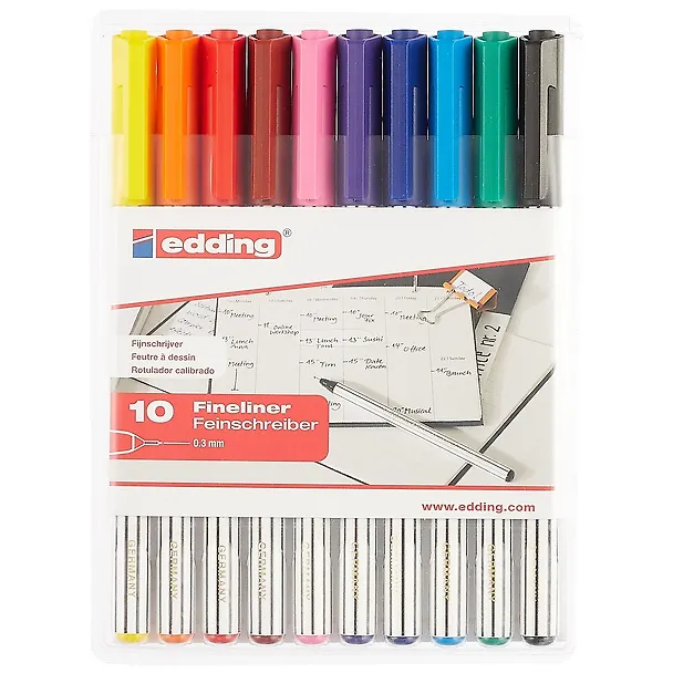 Ручки капиллярные 10 цветов 0,3мм, 89 EF, Edding