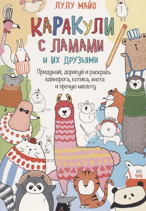 Каракули с ламами и их друзьями: Придумай, дорисуй, раскрась единорога, котика, енота и прочую милоту