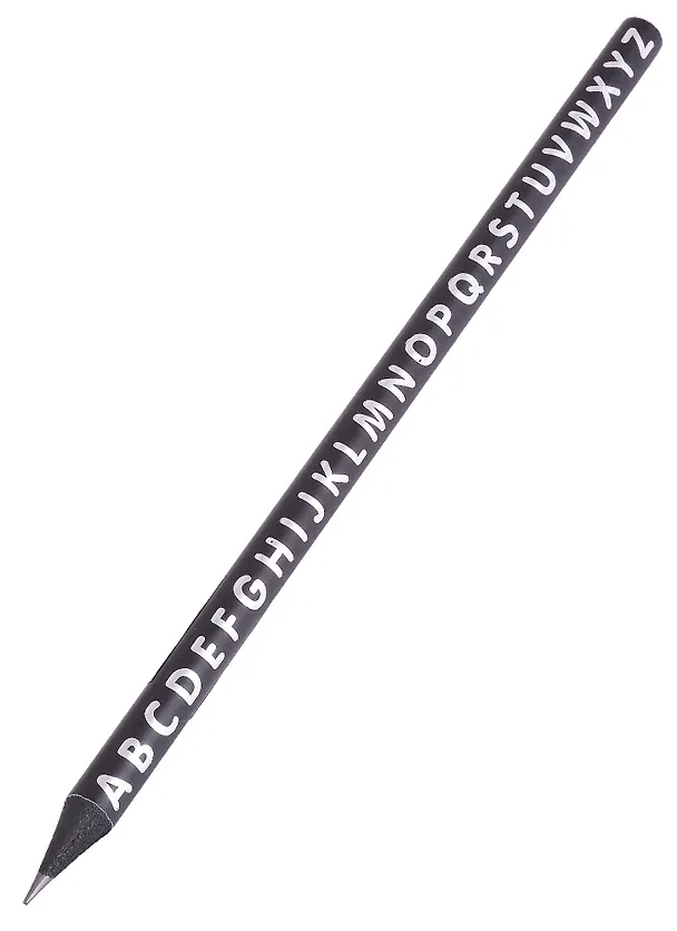 Обычный карандаш. Твердо-мягкий. в интересном дизайне: чернографит овый грифель в чёрном дереве с алфавитном.