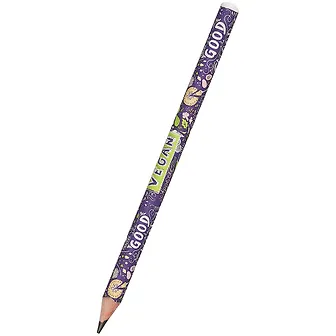 Очень красивый и толстый корпус у карандаша, вот почему его приятно и удобно держать в руке. Он графитно-черного цвета. Цвета в принте подобраны хорошо, т.е. они сочетаются друг с другом(фиолетовый и зелёный), поэтому, в общем и целом, карандаш выглядит эстетично. Это сочетание вызывает у меня ассоциации с цветочной клумбой, фиалковой порослью или лавандовым полем. Данная ассоциация очень позитивна и приносит лишь радость, и да, я знаю, что смысл дизайна другой, просто я так вижу. Грифель устойчивый, мягкий, писать им по бумаге комфортно. Выполнен очень качественно, рекомендую.