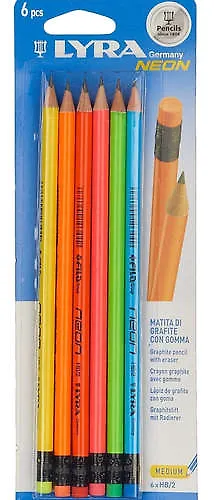 Карандаш чернографитный BLS 6 LYRA NEON C/G HB Набор 6шт лакированные неоновые с ластиком в блистере