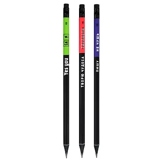 Чернографитный карандаш из черного дерева с заточкой, не ломается при падении и безопасен для детей. Эргономичная трехгранная форма корпуса создает дополнительный комфорт при использовании. Карандаш подходит для черчения и рисования. ФРАЗЫ С ХАРАКТЕРОМ. Твердость грифеля: HB. Размер: 188*7,5 см. Форма корпуса: трёхгранная. Материал корпуса: черное дерево. Покрытие корпуса: матовое прозрачное. Цвет корпуса: желтый, розовый, черный. Отделка: полноцветная печать. Наличие ластика: Да. Диаметр грифеля: 2 мм.