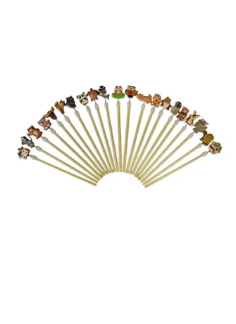 Карандаш увенчан деревянной фигуркой, изготовлены из натурального дерева.
