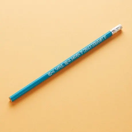 Простой сувенирный карандаш синего цвета с надписью "Один город. Одна любовь. Санкт-Петербург"