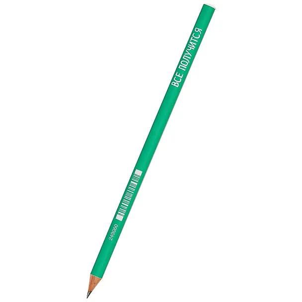 Стардатный карандаш, хорошего качества, пользуюсь такими карандашами уже давно. Этот карандаш украшен оригинальной надписью "все получится". Карандаш зелёного цвета, без рисунков, лаконичный дизайн. Грифель в карандаш яркий, рисует отлично, не размазывается, карандаш средней мягкости HB. Данный карандаш прекрасно точится, грифель прочный, не ломается даже если уронить карандаш.