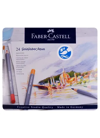Карандаши акварельные 24цв Goldfaber Aqua, метал.кор, Faber-Castell
