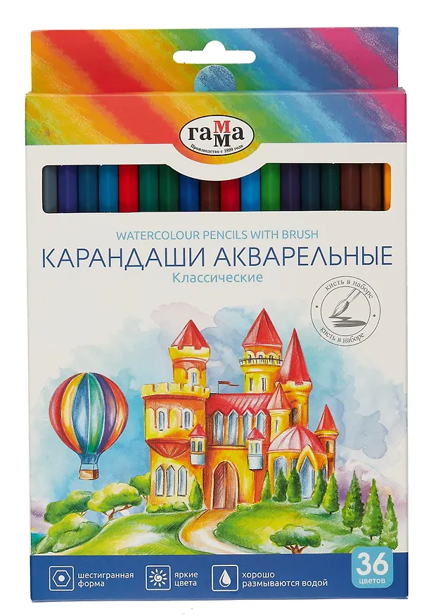 Огромный набор карандашей по приятной цене. Целых 36 оттенков в наборе дают разбег для творчества. Упакованы в коробку, дефектов не обнаружила. Цвета яркие, есть много оттенков схожих между собой. Можно создавать новые оттенки путем их наложения, справляются они с этой задачей неплохо. Подходят как для полноценных работ, так и для небольших зарисовок. Рекомендую к покупке