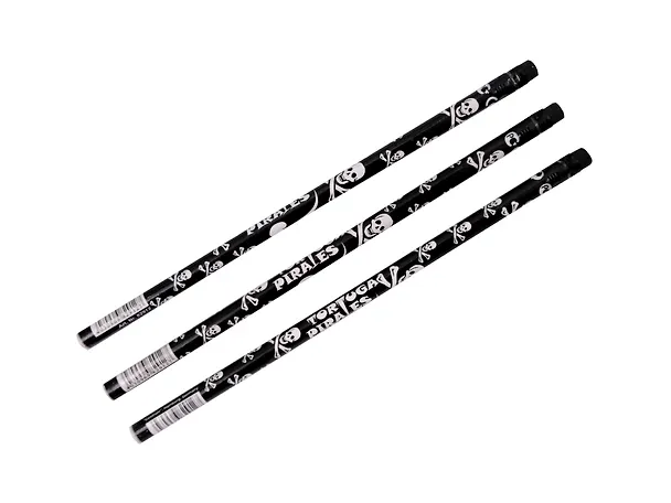 Карандаши чернографитные с ластиком мне очень понравились, качество у них хорошее, в наборе целых три штуки, мне пришли, как на картинке, чёрного цвета с принтом скелет, карандаши пришли ненаточенные.