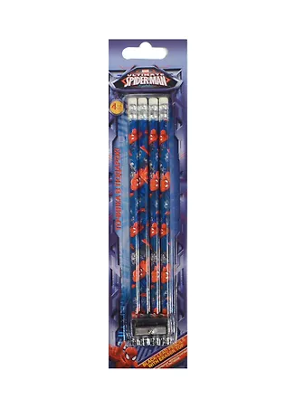 Карандаши чернографитовые 4шт "Spiderman" (HB c ластиком, точилка), шестигранные, Disney