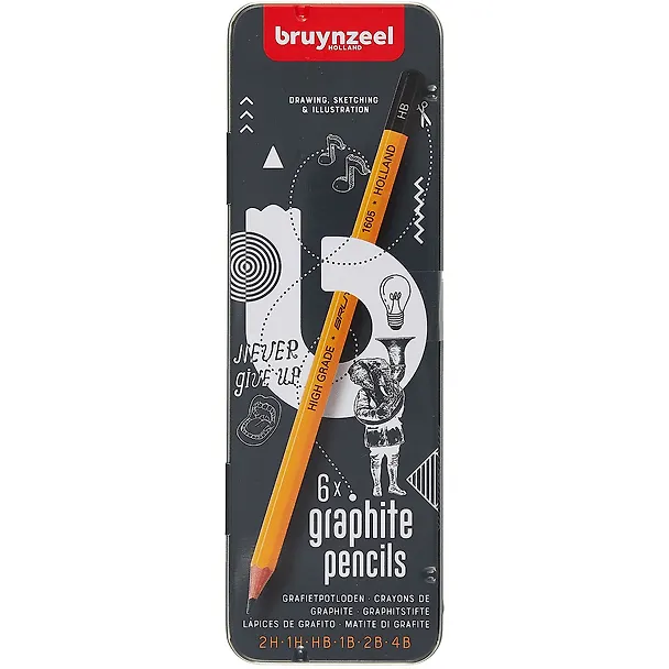 Чернографитные карандаши для записей, черченения, рисования и скетчей Bruynzeel Burotek подойдут школьникам, студентам, офисным работникам и начинающих художникам.